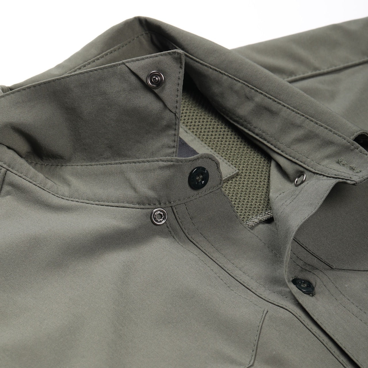 - Performance dry-fit fabric stretches, dries quickly, and works in all seasons
